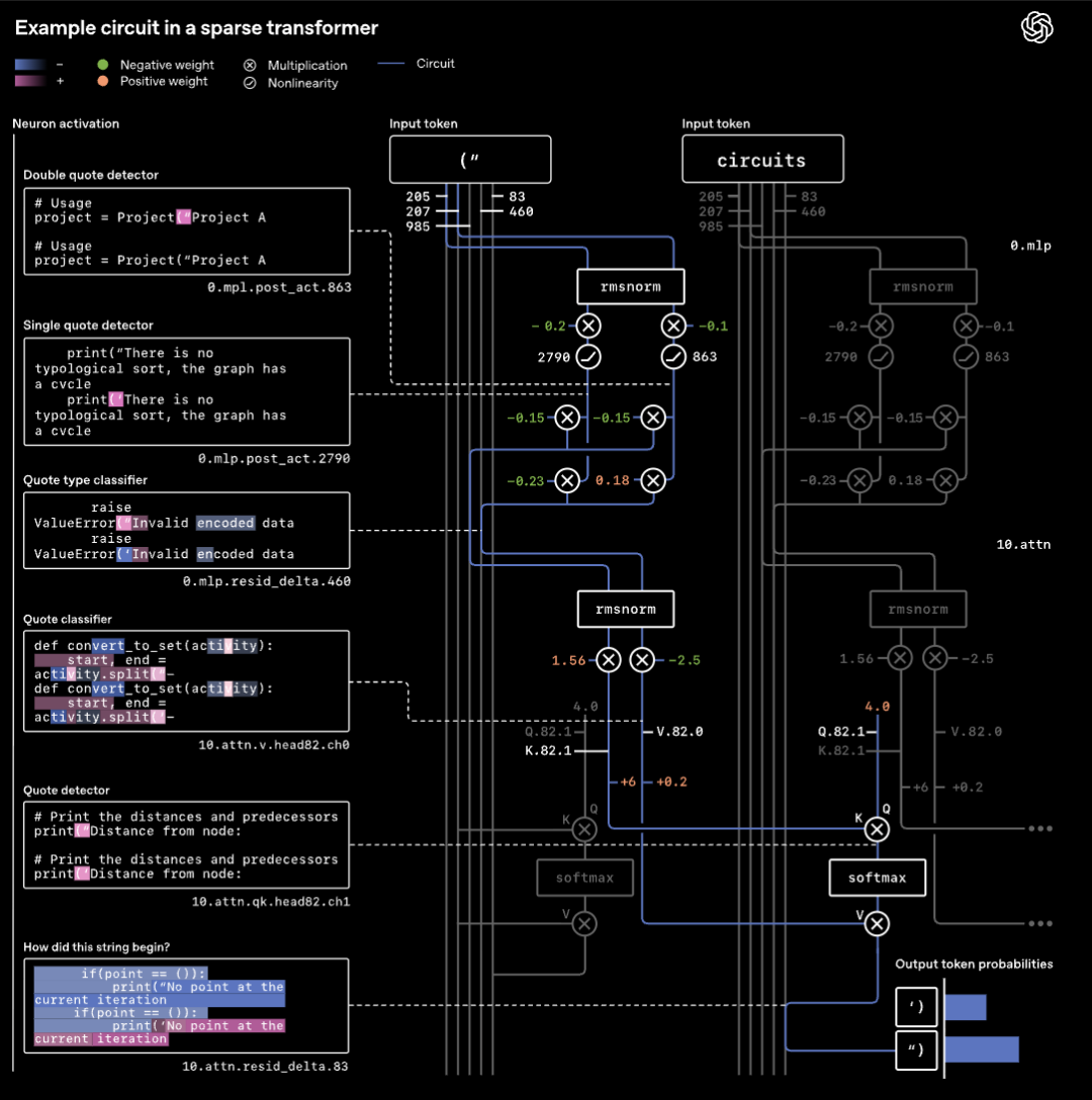 这是一种通过人为约束模型内部连接的稀疏性,让模型计算过程可拆解、可理解的大语言模型变体,本质上是为了解决传统稠密Transformer的黑箱问题,让内部的计算电路能被人类清晰解读,知道AI是如何做决策的,避免轻易相信AI的胡话(doge)。