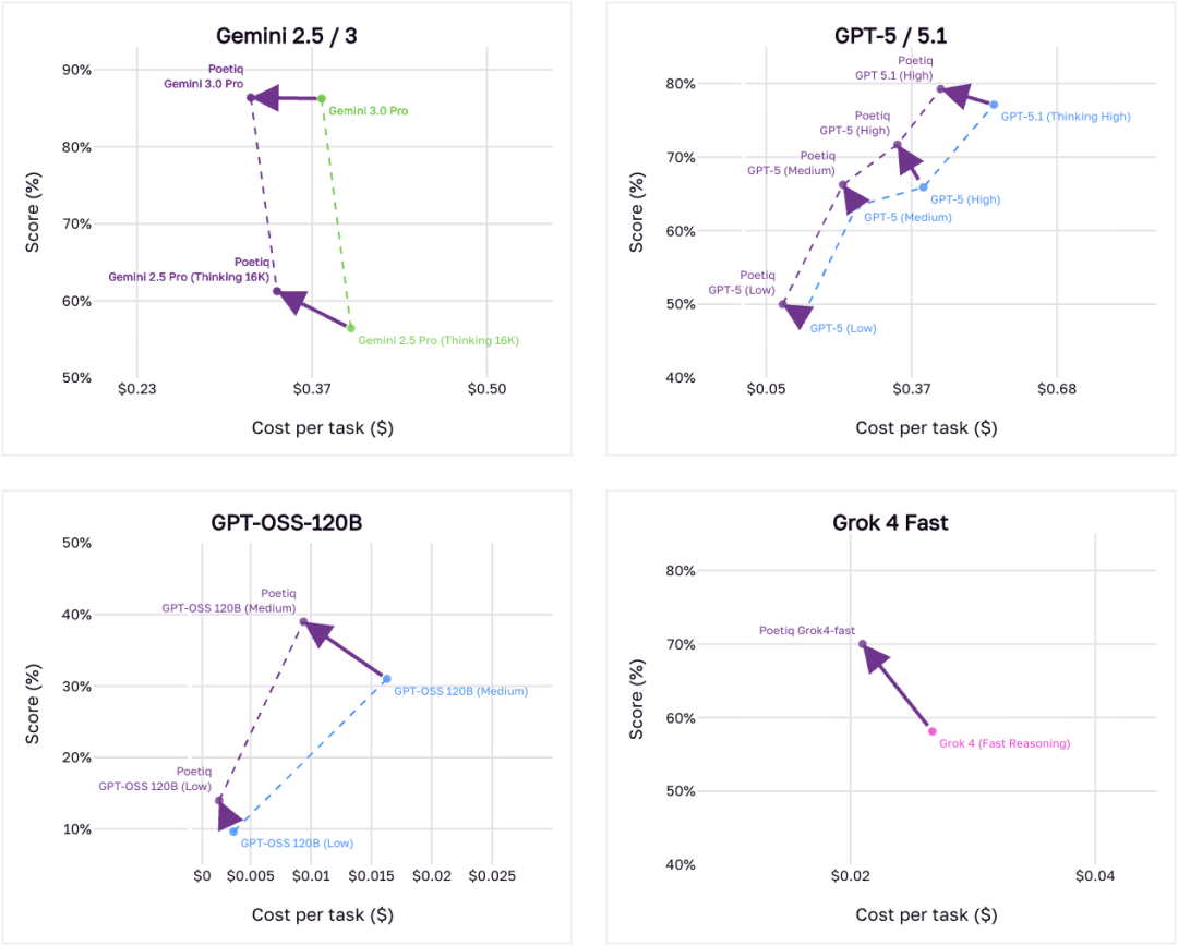每一次,Poetiq都实现了「更高准确率+更低成本」的组合。