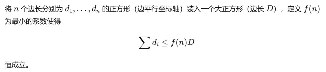 理由:对任意序列,可构造一系列正方形,它们互不重叠地填满边长为S(x1,…,xn)的大正方形。