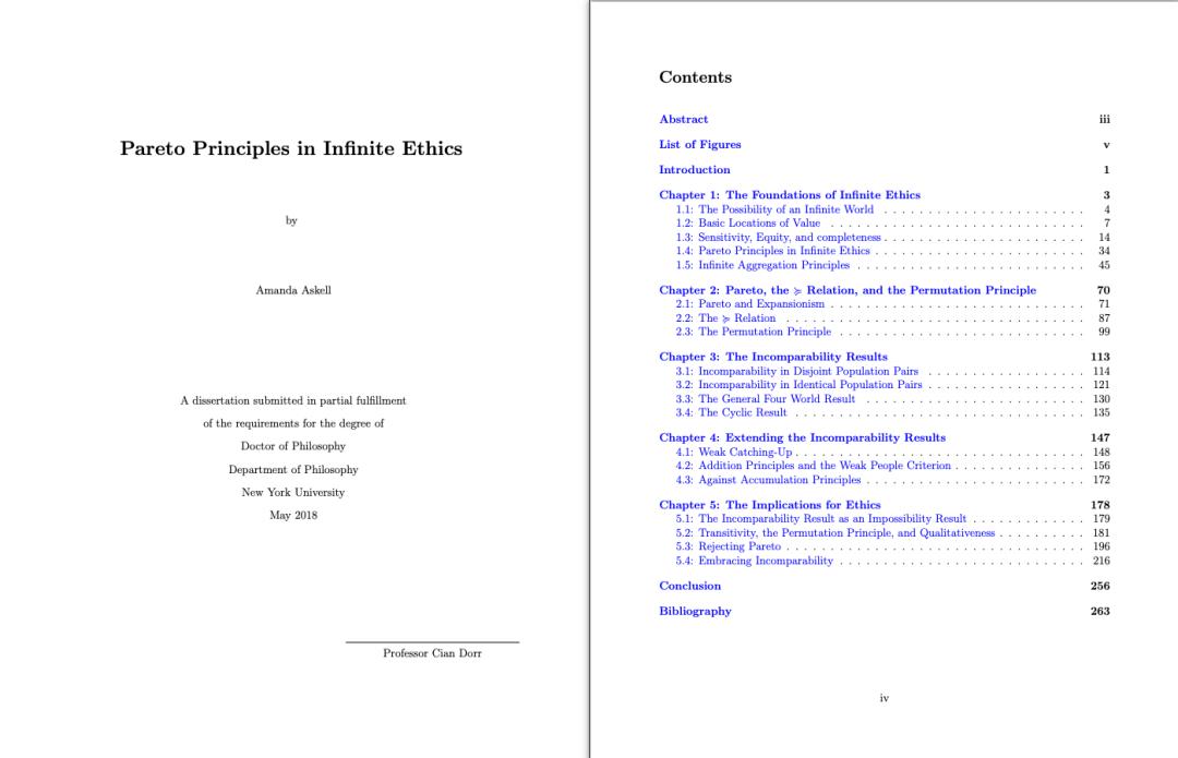 翻开她的履历,你会发现她是一位货真价实的哲学博士。她在纽约大学(NYU)的博士论文研究的是极其硬核的「无限伦理学(Infinite Ethics)」——探讨在涉及无限数量的人或无限时间跨度时,伦理原则该如何计算。简单地说,在有无数种可能性的情况下,人会怎么做出道德决策。
