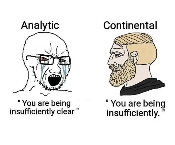 先快速科普一下:在哲学界,长期存在着「英美分析哲学」与「欧陆哲学」的流派分野。分析哲学像一位严谨的科学家,注重逻辑分析、语言清晰和科学实证,这通常也是程序员、工程师乃至 AI 训练数据的默认思维模式——一就是一,二就是二,追求精确。