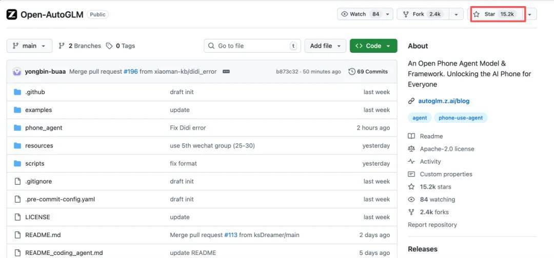 集成程度差异:豆包是系统级、软硬一体;AutoGLM是外挂型组件;产品体验一致性不足:前者开机就能用,后者往往需要一定的技术门槛。但这并不妨碍它在开源社区的走红:项目开源仅48小时,GitHub Star数从0飙升至8K,截至12月15日,已突破15K。