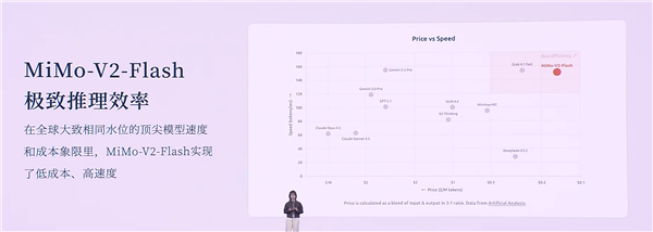 Xiaomi MiMo作为小米自主研发的首个推理大模型,备受瞩目。在演讲中,罗福莉详细介绍了此次开源上线的小米MiMo-V2-Flash,着重阐述了其三大显著特性。