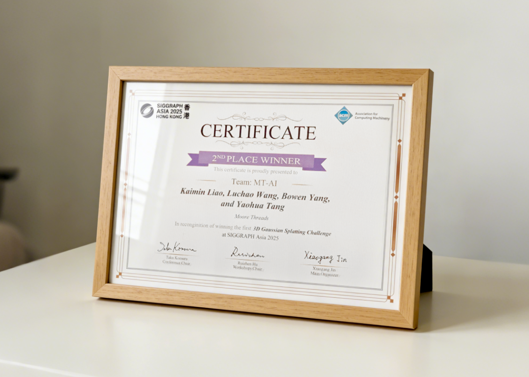 这一成就,印证了摩尔线程在图形智能计算领域技术路径的前瞻性与工程可行性,并体现了公司将前沿研究快速转化为实践成果的强大执行力。