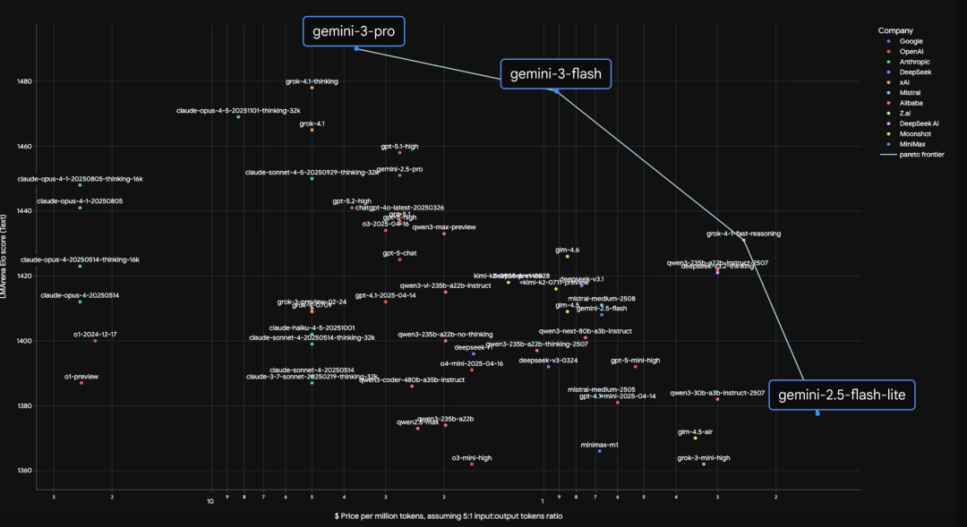 Gemini 3 Flash 在性能、成本和速度方面突破了帕累托极限。