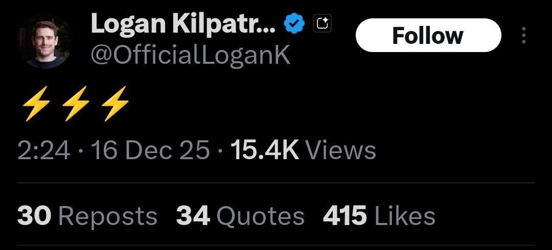 早在模型发布前,Google AI Studio 开发者平台 和 Gemini API 产品负责人 Logan Kilpatrick 就在 X 上发布了一条只有三个闪电符号的推文,当时就有大批网友猜测这意味着谷歌即将发布主打速度至上的 Flash 版本模型。
