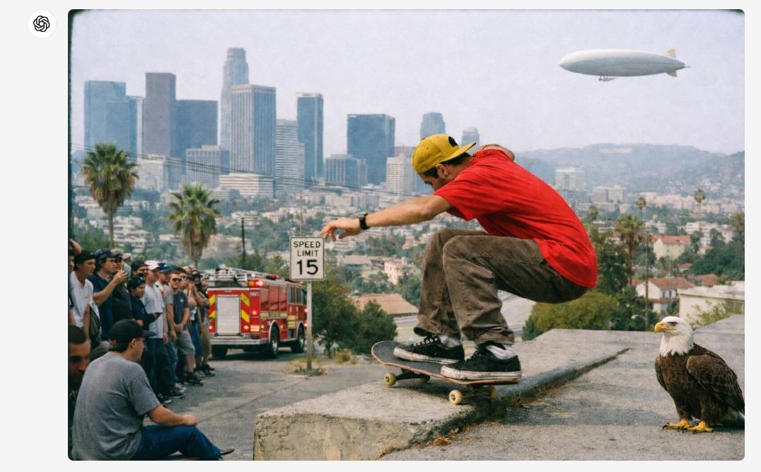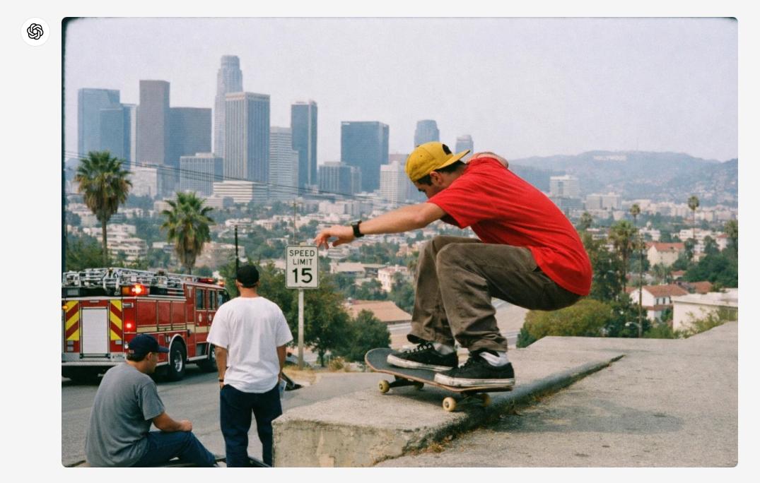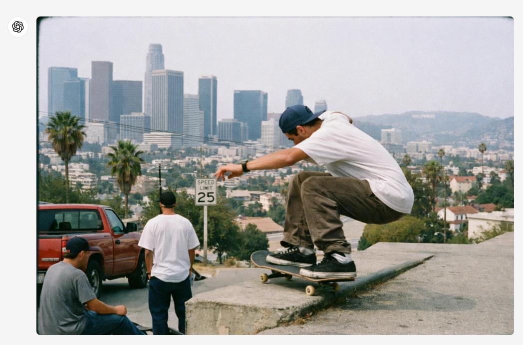 举例而言,以下是ChatGPT新图像模型生成的90年代末的洛杉矶街头摄影(演示版)。