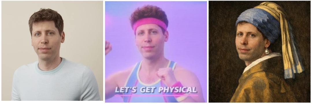 作为AI生成图像的重要应用,ChatGPT图像在创造性改造现有图片方面也有进步。例如将公司CEO奥尔特曼的个人照,转换成美国80年代的健美操教练,或是把他的脸放进世界名画《戴珍珠耳环的少女》中。