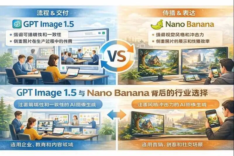 从这个角度看,GPT Image 1.5 与 Nano Banana 并非简单的竞争关系,而是代表了 AI 图像生成的两种方向:一种偏向传播和表达,一种偏向流程和交付。