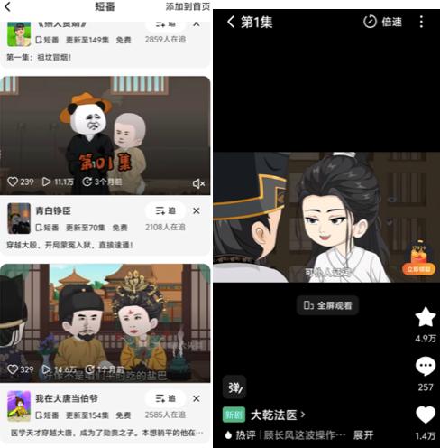 这三种漫剧形态都是在AI产能介入之前,就大量存在于短视频内容市场中的。沙雕漫与B站、抖音、快手等平台的二创生态密不可分,动态漫和小说剧则高效利用了IP方的存量资产,快速打通将漫画、网文资产视频化的商业可行性,成为一些非头部IP轻量级开发的首选路径。