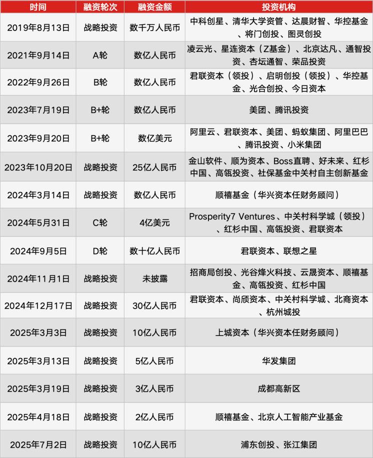 截至目前,公司共完成7 轮融资:腾讯领投2.5亿美元B轮,阿里随后完成 6亿美元战略投资;最近一轮则由上海国资出资 3亿美元,公司整体估值超过40亿美元(约 288 亿元人民币)。