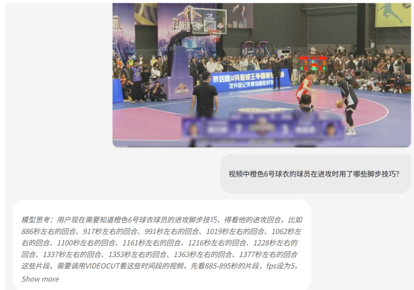 比如官方演示中,豆包 1.8就对篮球视频进行分析,最终浓缩出正常比赛的内容。