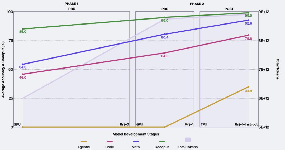在预训练末期,Essential AI团队确信Rnj-1已具备数学、编程与科学知识等潜在能力。