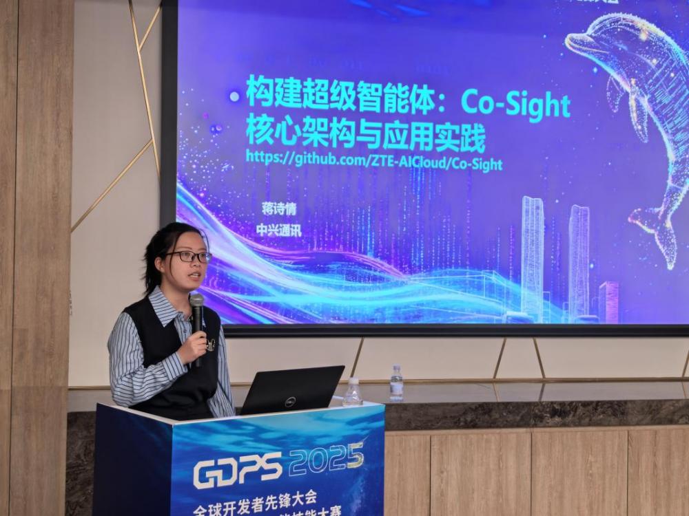 技术如何转化为生产力?中兴通讯高级工程师蒋诗情带来了《构建超级智能体:Co-Sight 核心架构与应用实践》的分享,展示了Co-Sight的工业级落地能力。