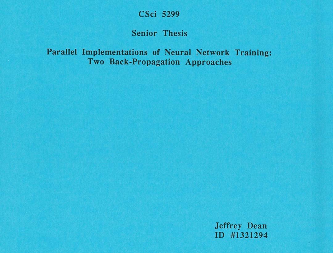 于是,他向明尼苏达大学Vipin Kumar教授申请做荣誉论文,主题是「用于训练神经网络的并行算法」。