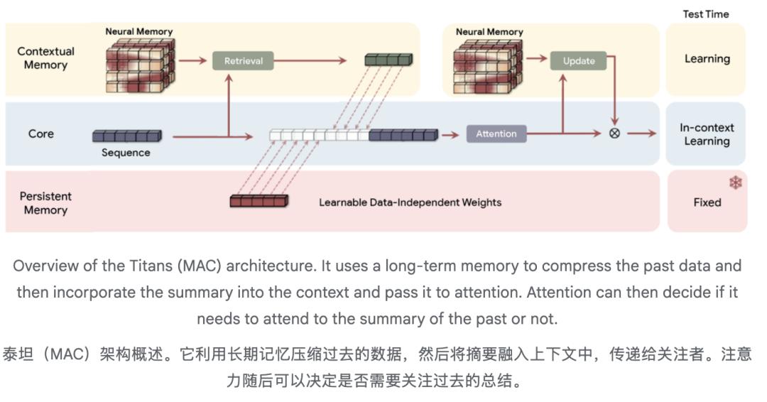 Titans的MAC(Memory as Context)变体允许将历史信息压缩进神经网络权重,而非无限增长的KVCache。这解释了为什么Flash能以极低的内存占用处理百万级 token,且速度极快(线性推理)。