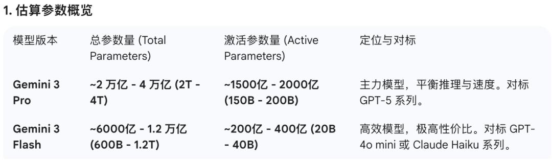 分别向Gemini和GPT询问了Gemini 3 Pro和Flash的参数大小。