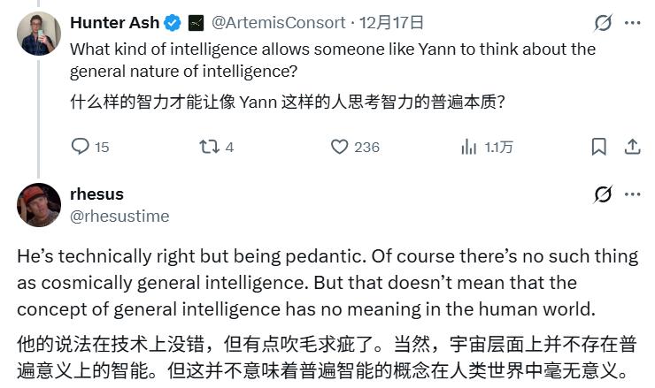 不过,两位大佬的争论看似围绕「定义」,实质上反映的是对 AGI(通用人工智能)发展路径的不同判断。