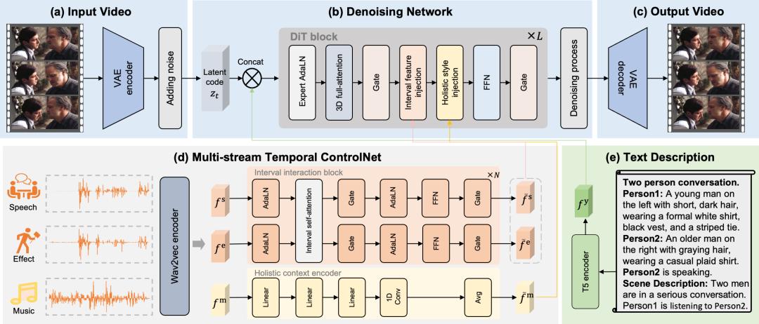 * 设计多流时间控制网络(MST-ControlNet),在同一生成框架内同时处理局部时间区间的精细同步和全局风格调节,从结构上支持不同音频成分在时间尺度上的差异化控制。