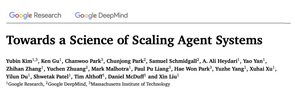 DeepMind的第一篇论文用180个受控实验配置打破了「多Agent必然更强」的神话。