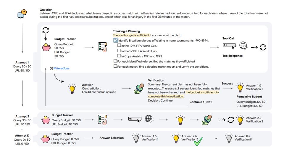 Agent不是一次性列出所有步骤,而是动态更新:新信息可能创建新分支、解决待定步骤、废弃无效路径。预算充足时扩大探索广度,预算紧张时深挖验证深度。