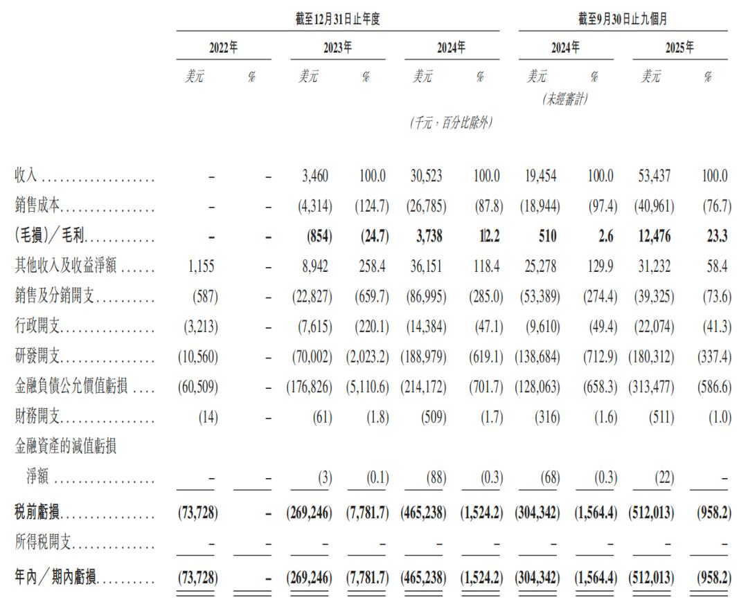 靠着模型和ToC产品并行的商业化布局,MiniMax是为数不多已经迈入“亿元年营收俱乐部”的中国AI公司。招股书显示,仅2025年前9个月,MiniMax的收入就达到了5343.7万美元,超过了2024全年总收入(3052.3万美元)。值得注意的是,招股书强调,MiniMax的C端产品已接近盈亏平衡。