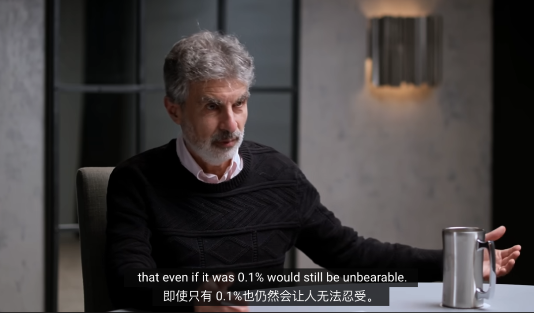 哪怕只有 1% 的概率让世界消失、人类灭绝,或是让全球独裁者借助 AI 掌控世界,这种风险也是无法接受的。如果概率是千分之一,同样不可容忍。