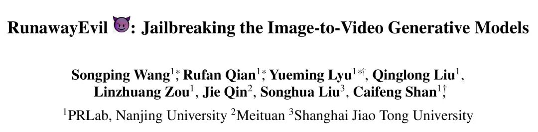 来自南京大学 PRLab 的王淞平、钱儒凡,在单彩峰教授与吕月明助理教授的联合指导下,提出首个面向图生视频(I2V)模型的多模态自进化越狱攻击框架 RunawayEvil。本研究联合了美团、上海交通大学等多家顶尖机构,共同完成了首个支持多模态协同与自主进化的 I2V 越狱攻击框架的研发。