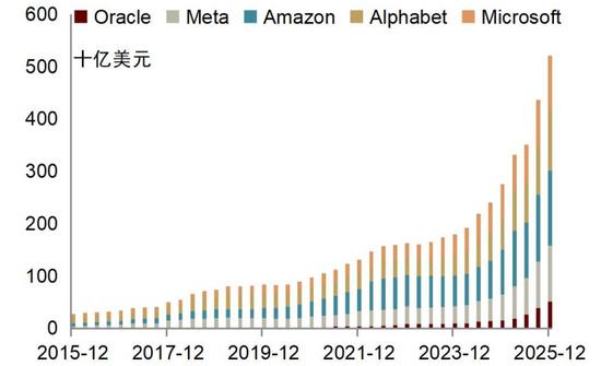 不止软银,全球范围内,企业对AI的投入越来越多。2025年三季度,微软、Meta、亚马逊、谷歌、甲骨文等五家重投入AI的头部企业合计资本开支规模达到1057.73亿美元,同比增长72.9%。