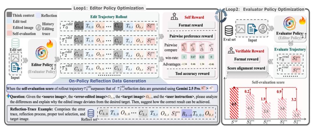 Loop 1编辑者优化环 (Editor Policy Optimization)是让模型学会如何更好地使用工具来修出好图。