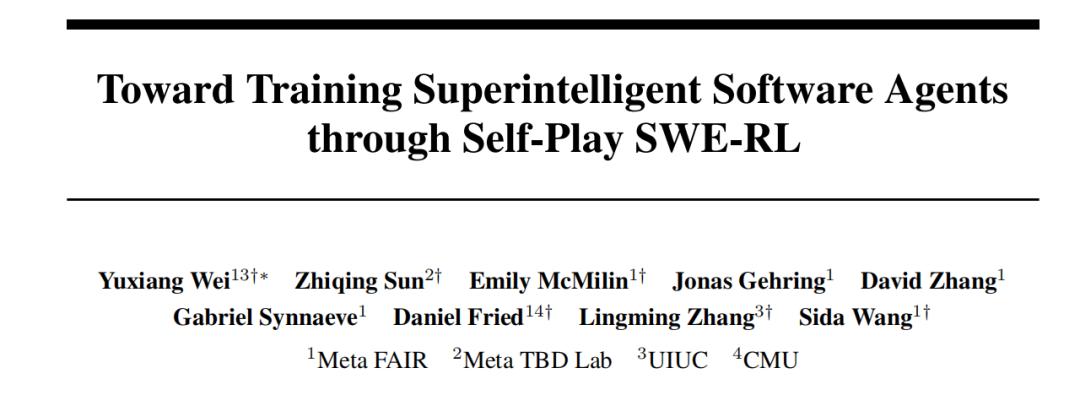 基于此,来自Meta、伊利诺伊大学厄巴纳-香槟分校的研究团队提出 Self-play SWE-RL(SSR),作为软件工程智能体训练范式的第一步。该方法对数据假设的要求极低,仅需访问包含源代码和已安装依赖项的沙盒化代码仓库,无需任何人工标注的问题或测试用例。