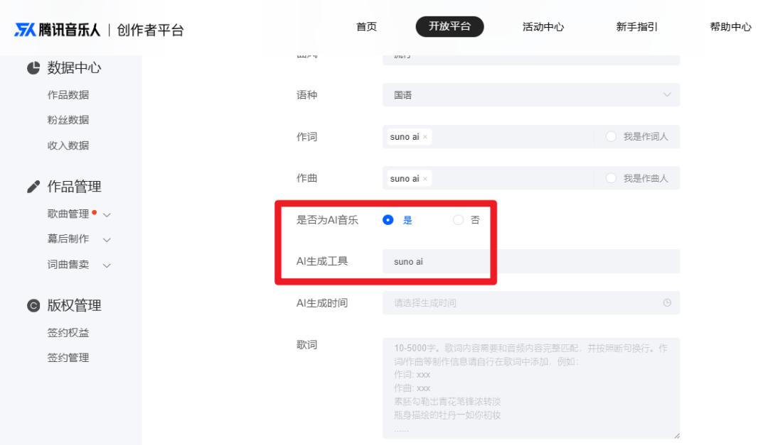 腾讯音乐选择“开放通道,关闭收益”。它开辟AI音乐快速上传通道,将内容池迅速做大,但明确表示AI作品暂无收益。这像是一种“开源节流”的防御策略。一方面,避免海量AI内容过早冲击以“周杰伦们”为核心的、昂贵的版权变现体系,另一方面,试图牢牢掌握AI内容入库与商业化的最终定义权。