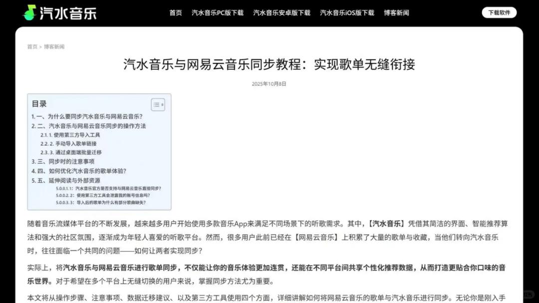 近期,汽水音乐在官网的一系列动作,更是将这场“定义权”之争推向了明面。它通过官方教程引导用户“无逢迁移网易云歌单”,不仅对标产品体验,更直接拆解用户转移的技术壁垒。