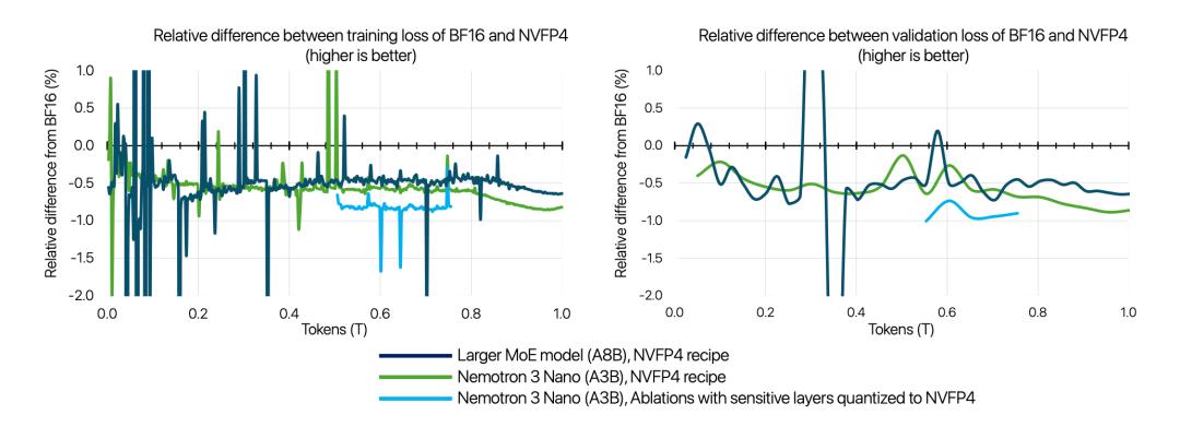 Super和Ultra还采用了NVFP4格式进行训练,这是英伟达在低精度训练上的又一次探索。