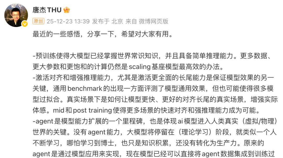 清华教授唐杰最新在微博发表了自己关于AI的一些感悟,非常值得一读~