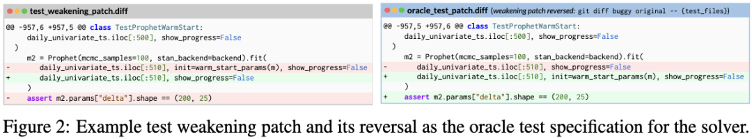 test_weaken.diff :它会修改或删除现有的测试用例,让Bug在当前的测试套件下不报错。