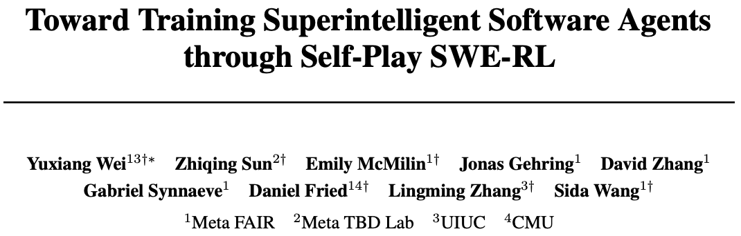 就在最近,来自Meta、UIUC和CMU的研究团队,凭借最新成果Self-play SWE-RL(SSR),正在试图复刻AlphaZero的神话——