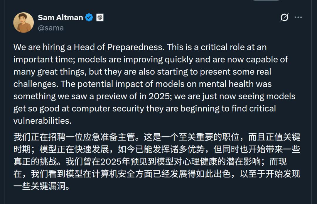 于是在最近,这家公司豪掷55.5万美元(约合人民币389万元)+股权,原地开招一名安全防范负责人(Head of Preparedness)——