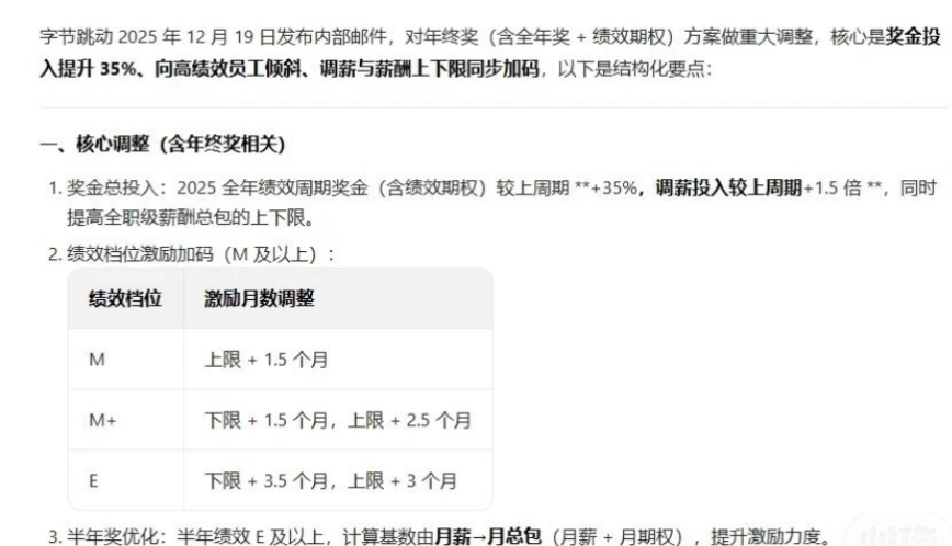 字节也宣布2025年奖金投入提升35%,调薪投入上涨1.5倍,提高所有职级薪酬总包的下限(起薪)和上限(天花板)。
