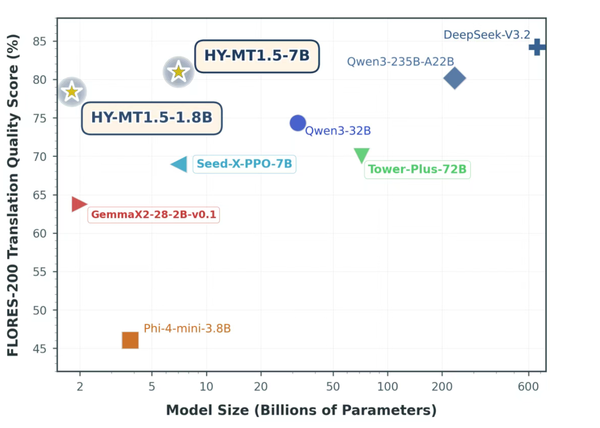 【CNMO科技消息】12月30日,腾讯官方宣布开源其混元翻译模型1.5版本,包含Tencent-HY-MT1.5-1.8B和Tencent-HY-MT1.5-7B两款模型,支持33种国际语言互译及5种民汉/方言翻译,覆盖捷克语、马拉地语、爱沙尼亚语、冰岛语等小语种。两个模型已在腾讯混元官网、GitHub及HuggingFace平台上线,供开发者免费下载使用。