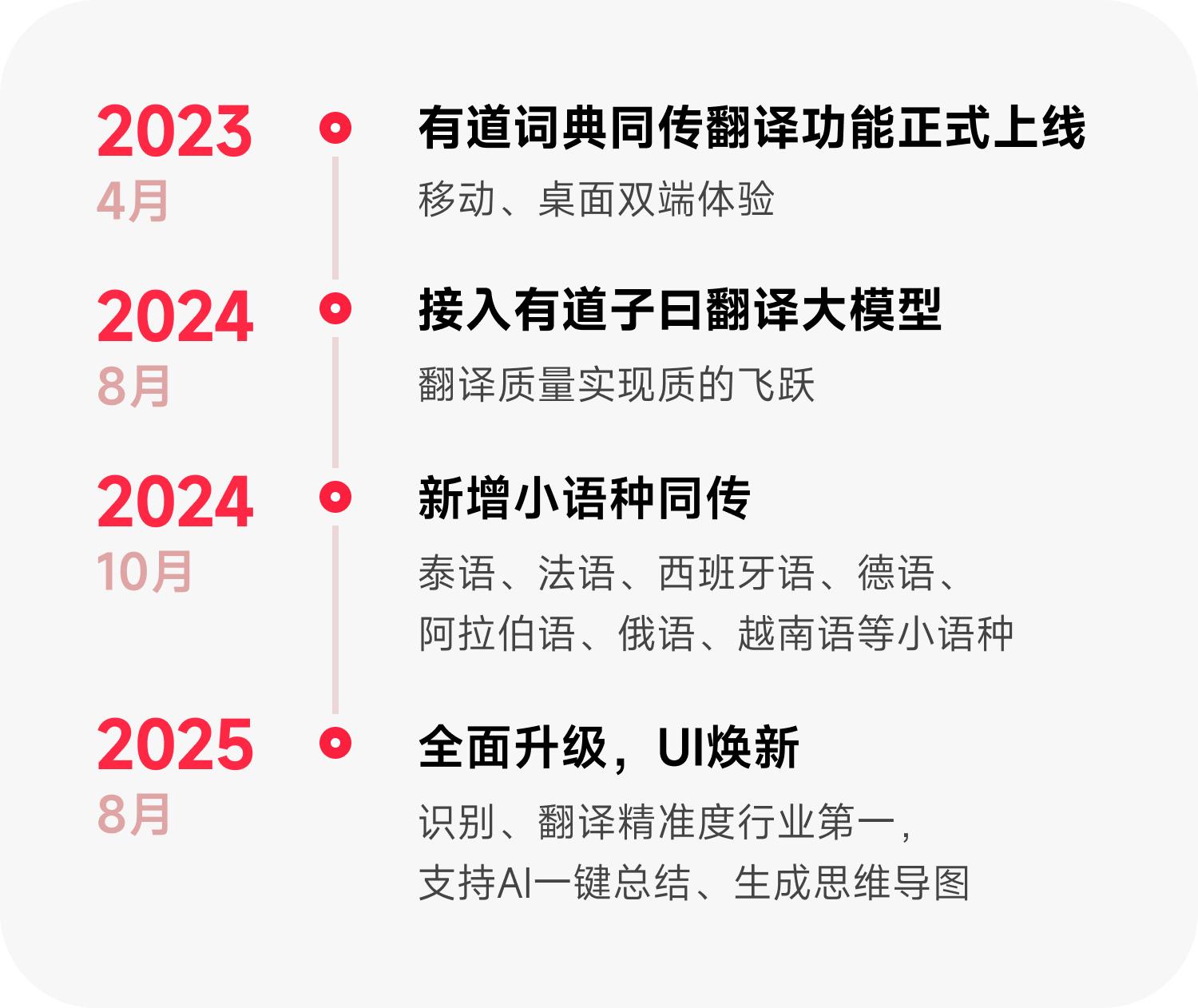 举个例子,深受留学生喜爱的DeepL上线了DeepL Voice,国内的有道则在8月进行了全面升级,除了识别、翻译精度的提升,现在还能做到在会后快速生成带发言人角色的纪要、思维导图。