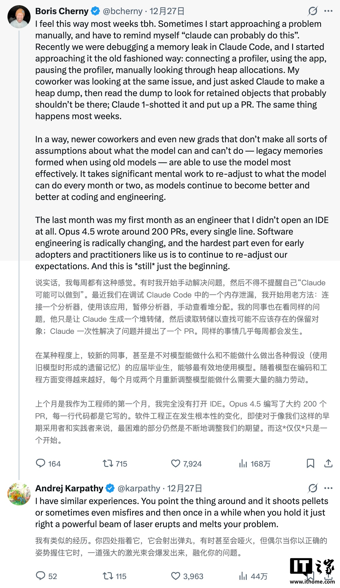 他在 X 上写道:“我从来没有像现在这样,觉得自己作为程序员如此落后。”