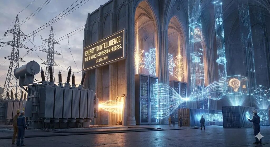 「过去10年,AI大模型的技术本质,是把电力能源通过计算过程转化为可复用的智能。」