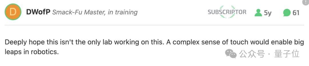 网友表示这种复杂而精细的触觉感知,将会为机器人领域带来一次巨大的跃迁。
