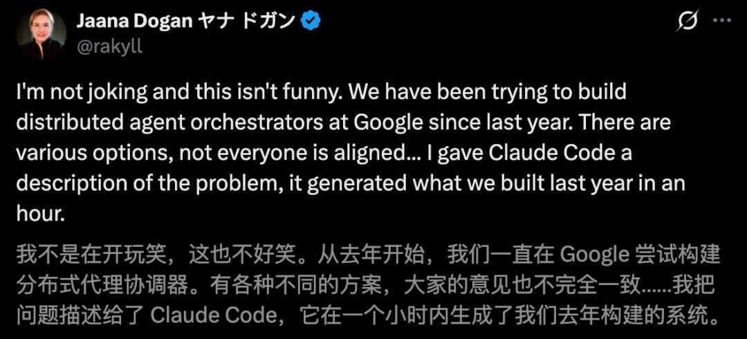 谷歌首席工程师Jaana Dogan连发多帖,高度赞扬Claude Opus 4.5——