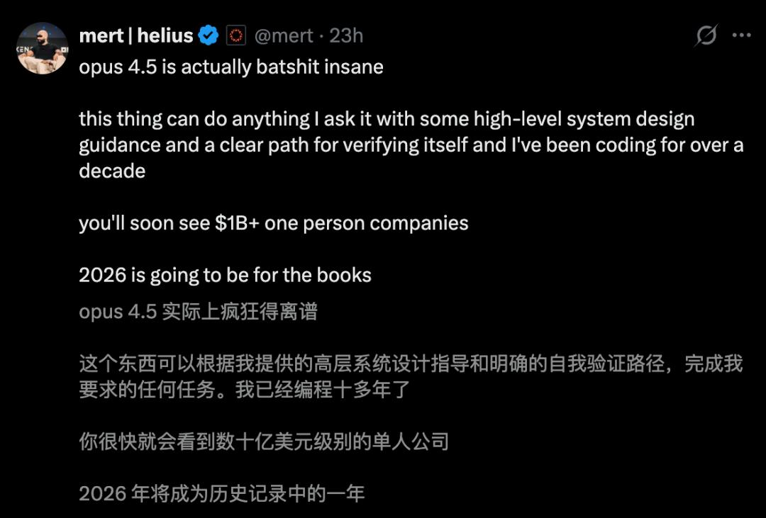 Helius首席执行官表示,「Opus 4.5简直疯狂到离谱」。