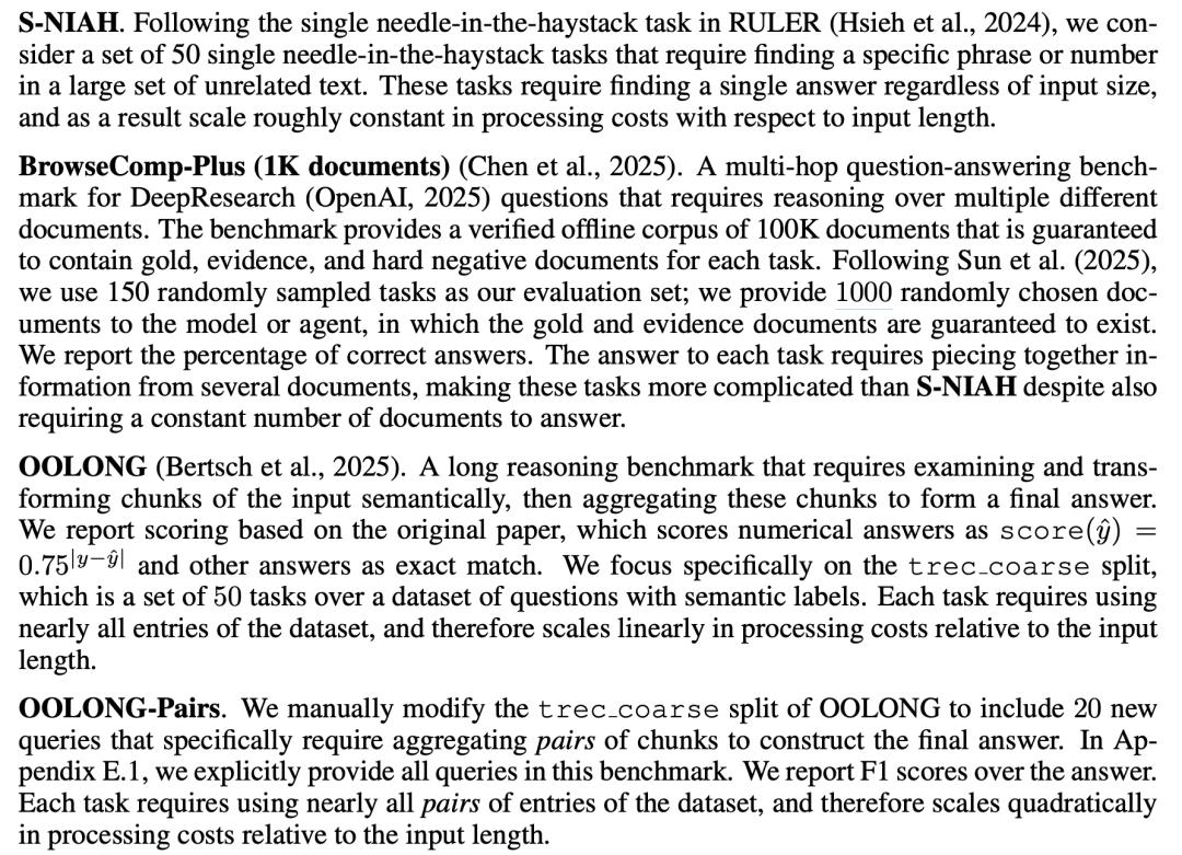 他们用了很多测试机,其中一个叫OOLONG的测试集,这个测试需要AI理解超长文档,并回答需要综合全文信息才能回答的问题。