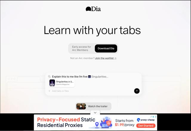 以Dia为代表的硅谷玩家,走的是“推倒重来”的路子——直接砍掉传统标签页,整个界面就一个搜索框,把AI深度融入浏览器底层,试图彻底颠覆现有操作逻辑。
