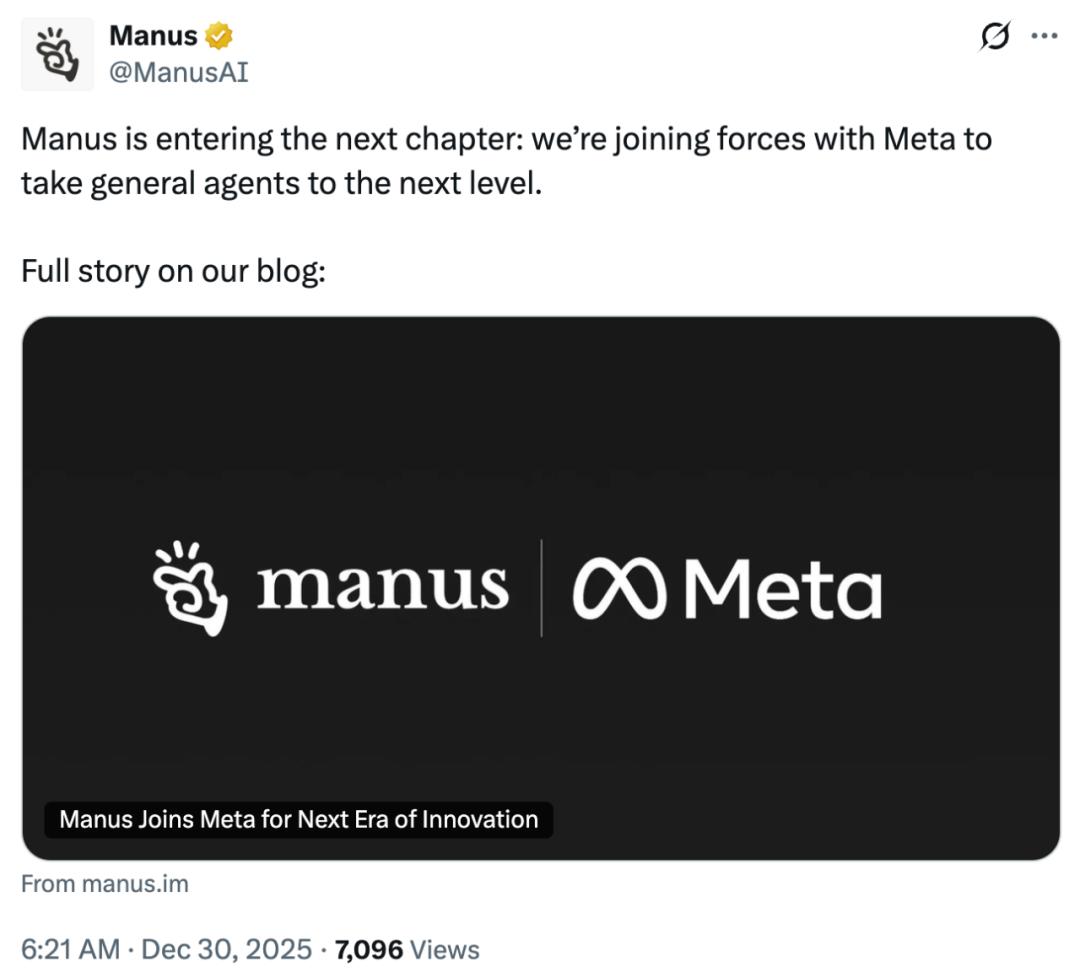 没挖到姚顺雨,Meta也没闲着,他们用“数十亿美元”收购了Manus。对此,知乎上有条评论很有意思:“姚顺雨带几个人几周就能做出Manus”。
