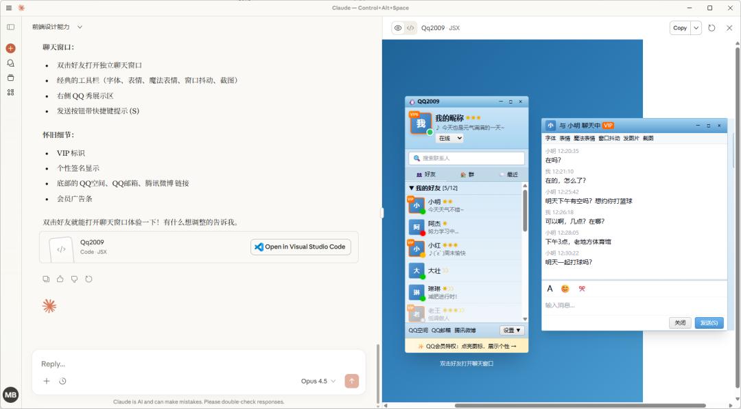 我还可以调用它的前端技能,做一个老版QQ的前端页面,这蓝底风格还真没问题,甚至还有经典的开QQ会员弹窗。。